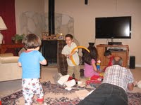 March was all over the place for us. The first part of the month we battled sicknesses and hospital visits! Adam had pneumonia and had to be hospitalized! He was in for 4 days! Cory stayed over night and part of the mornings and I took the afternoon to late evenings. It was hard having to leave Kaitlyn at home and not being able to nurse her. Somehow we survived... and then, when we were home again, Adam had a fever and hard time breathing again! Another ambulance ride from the ER to the hospital in Stockton with RSV! This trip only lasted 3 days. I think Adam was finally getting used to the nurses and doctors coming by every 10 minutes to pester him. It was all for his good but he just didn't understand what was going on. When we got home we had to break him of his eating and drinking everything in bed! He was very demanding at the hospital and tried to continue it when we got home, so we had to break him of that too. This picture is Adam getting his breathing treatments at home. The second time around he actually let us put his "puppy" mask on him and give him his medicine. (He's watching SpongeBob)
